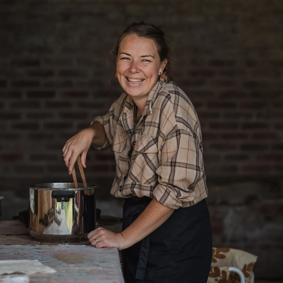 j'ai découvert la teinture végétale en 2021 et développe cette belle pratique depuis. La rénovation de ma ferme m'a amenée à travailler aussi d'autres matières comme le bois, la brique, la chaux...