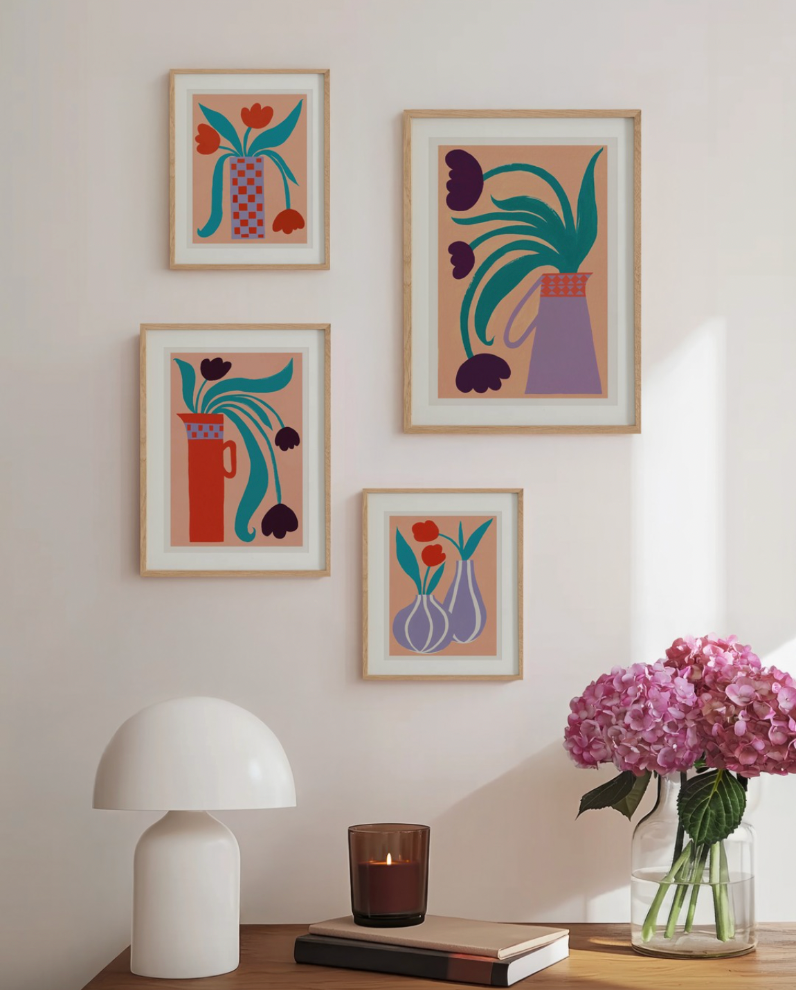 Inspirée par la nature et les petits bonheurs du quotidien, je crée des pièces fleuries et lumineuses, pensées pour apporter une touche joyeuse et poétique à votre intérieur. La gouache est mon médium de cœur, celui qui donne vie à mes compositions.